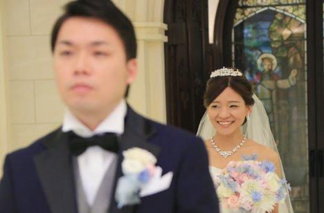 挙式ではステンドグラスに囲まれた、厳かな教会式を行い感動の時間を過ごしました。そして、お二人にとってもう一つ忘れられない時間。それが、挙式前の二人っきりで行うチャペルでのファーストミートです。なんともロマンチックな…♡