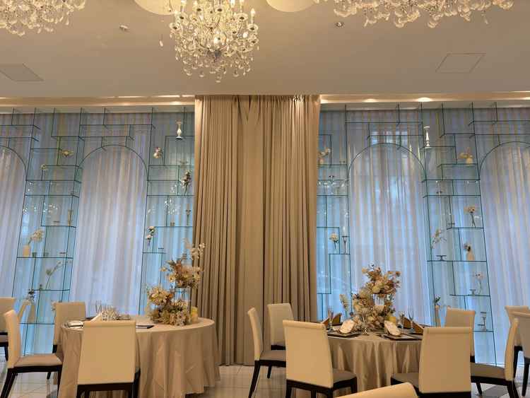 チャペルが物凄く素敵でした。ステンドグラスが全面にあることで特別感がありました。披露宴会場も広くて高級感のある素敵な場所でした。披露宴会場が1階でカーテンが開いていると外が見えるのが少しだけ気になりました。