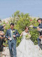 チャペル外にある大階段ではゲストの皆様から祝福のフラワーシャワーが可能です。 その他にも、ゲスト皆様との集合写真の撮影やバルーンリリースなど楽しい時間をお過ごし頂けます。 新郎新婦様の晴れの門出を皆で祝福する【菓子撒き】も人気の演出です!