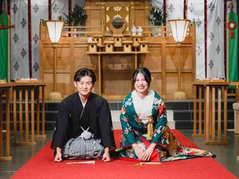 - 館内に併設されている神殿テルスはどこにもない和モダンの雰囲気。厳かな神前式を演出。 【高良大社】の神にこれまで見守って下さったご家族の前で永遠の愛を契り新郎新婦様の新たなスタートを… 後方にはご親族様だけでなく大切なご友人にも見守っていただけるようお席もご準備しております