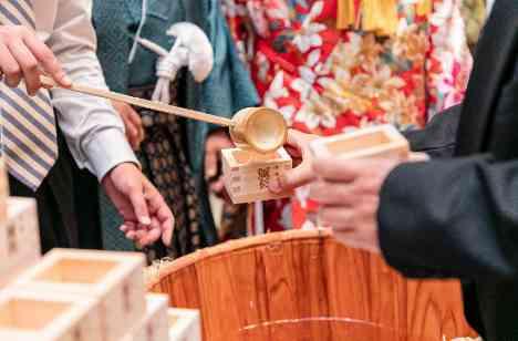 美味しいものとお酒が大好きなお二人。 もちろんそんなお二人のゲストの皆様もお酒が大好き!! 披露宴ではこだわって選んだお料理と美味しいお酒を皆さんに振る舞いたい! という事で、、、地元の酒造屋さんから取り寄せた日本酒で鏡開きをしゲストの皆様へ振舞酒でおもてなし。 行列ができるほど喜んでくださいました。