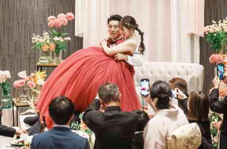 何かゲストの皆様と楽しめるゲームが出来ないかと…お考えになられたおふたり!お打合せの中でご提案させていただいた、お姫様抱っこによる体重あてクイズを行う事に!各テーブル楽しそうに予想してしてありました。 そして、正解発表はその場でのお姫様抱っこ♡ クイズの正解も気になりますが、皆様お姫様抱っこ姿に歓声が!!大盛り上がりのゲームとなりました。