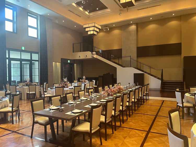 洗練された雰囲気の披露宴会場で良かった。 階段があるため、入場退場の演出にも幅を持たせることが出来る。