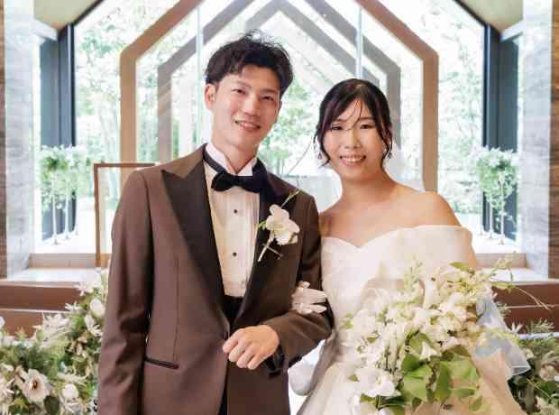 新緑の季節、凛とした空気の中で行われたファーストミート。 背中を向けて待つ新郎の肩を、新婦がそっと叩きます。振り返った瞬間、視界に飛び込んできたのは新郎が用意したサプライズの花束。予期せぬ贈り物に、新婦の表情からは自然と笑みがこぼれました。 瑞々しい緑を背景に、花束を挟んで向き合う二人。気取らないやり取りの中に、お互いを想う純粋な気持ちが映える、温かなシーンとなりました。