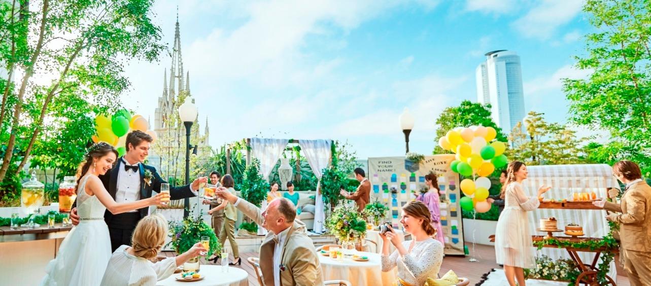 屋上を使ったガーデンパーティが解放的と大人気 収容人数:105名