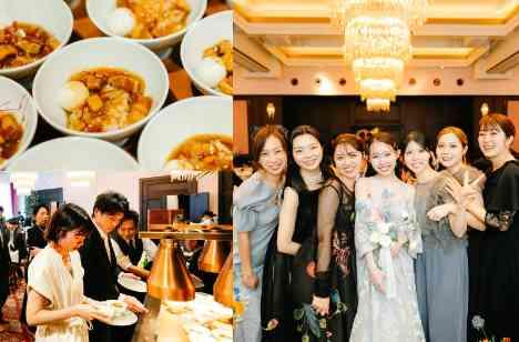 おふたりからゲストのみなさまにサプライズでご飯ビュッフェのプレゼントをされました。ビュッフェ台には魯肉飯や麻婆豆腐などTHE CONDER HOUSEらしい中華の一品たちがずらっと並びます。 ビュッフェを自由にお召し上がりいただきながら、歓談中心の進行でみなさまゆっくりとお過ごしになられていました