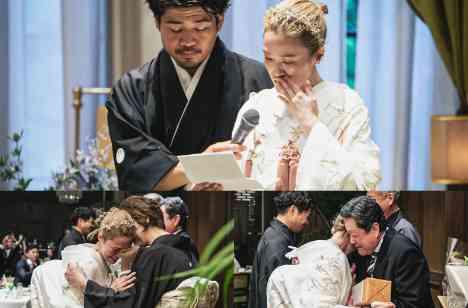両親の応援があったからこそ夢を叶えられたこと、仕事を頑張る背中を見て育ったからこそ今の自分の仕事への向き合い方があること、いつでも自分の味方をしてくれたこと、たくさんもらったその優しさを今後家族に与えられる存在になりたいということ 心からの"ありがとう"をご自身の言葉で伝えられました そして贈呈品として花束とお酒を贈られた新郎新婦様 お酒を囲んでまたみんなが集まれるようにという想いを込めて