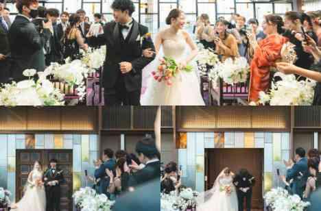 どうしてあなたを結婚式に呼びたいと思ったのか、おふたりの素直な想いを伝えるために挙式がはじまる前に一斉にお読みいただくお手紙を おひとりおひとりにご準備されました。 大切なゲスト様にお届けいただく挙式演出には、新婦様のお好きなチューリップとカスミソウを用い、ダーズンフラワーセレモニーを行いました。