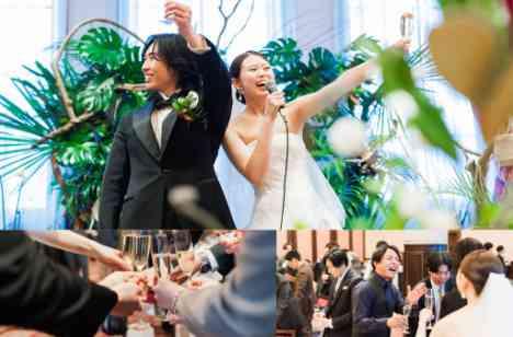 みんなのよく知るテレビ番組をオマージュしておふたりに纏わるクイズをゲスト参加型でお楽しみいただきました。 結びも楽しい雰囲気のまま帰ってほしい!とおふたりそれぞれ挨拶をしていただいた後は、乾杯の掛け声のもと1卓ごとラウンドをしてご退場されました。“今日は本当にありがとう”おふたりもゲストも想いを通わせて最高の1日の結びです。