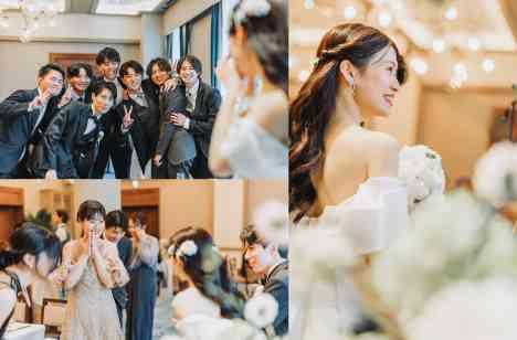 オープニングムービーの上映後、新郎新婦からのウェルカムスピーチ「今日はみんなと、たくさん話して笑って、楽しい時間にしたいです」その言葉どおり温かな笑い声がたえないパーティが始まりました。メインテーブルではゲストとの写真撮影を楽しみ、久しぶりに再会したご友人との会話にも花が咲き、おふたりの周りにはいつもゲストの皆様で溢れています。