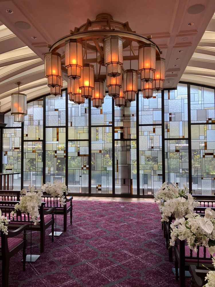 挙式会場のステンドガラスがとても映えていて、ここで式を挙げたいと率直に感じました。待合室もとても素敵でした。