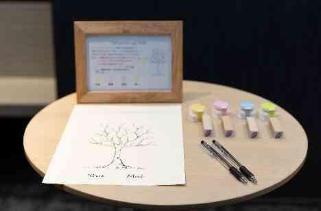 挙式のスタイルは人前式。人と会うことが難しい、こんなご時世だからこそ、ゲスト全員で、参加型の演出を行うことが、一生の思い出に残る。全員で作り上げたウエディングツリーにお二人で仕上げの作業をしていただきました。また、新郎様の甥っ子君達にリングボーイをやってもらうことで、とてもアットホームな空気のなか、挙式の時間を過ごしました。
