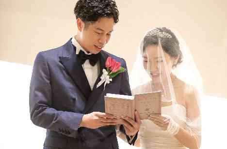 誓いの言葉としてお二人が作成されたのはブックタイプ。新郎Nさんは記念日にメッセージブックをお渡ししており、「結婚式も本を使いたい!」との思いで作られました。1日、1週間、1ヵ月、1年とお二人が夫婦として生活をする中で約束したいことを誓いの言葉として読み上げました。「1日1日を大切にしていこう」という思いが強いお二人だからこその誓いの言葉は、会場内をあたたかい雰囲気にしてくれました。