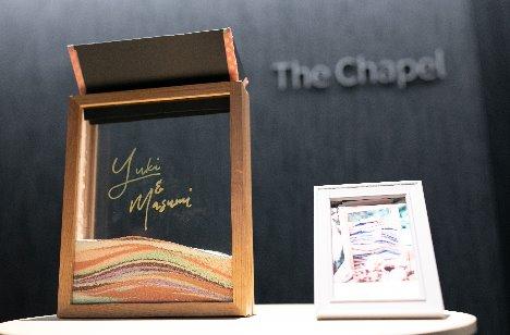 サンドセレモニーを行いました!「夫婦に必要なものは何だと思いますか?」の問いに合わせて用意した5色のカラーサンド。ゲスト様にもご参加いただき、最後は新郎様新婦様も思い思いのサンドを入れて頂きました。笑顔に溢れる人前式となりました。この日、この瞬間にしか作成をすることのできないサンドセレモニーは、大切なゲストとお二人とを繋ぐ一生の思い出の品になります。