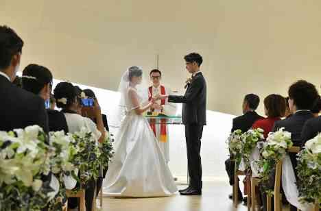教会式スタイルをお選びになった新郎新婦様。新郎様はちょっぴり緊張されていました。新婦様はお父様と一緒にバージンロードを歩いて頂きました。今までの思い出を振り返りながら歩くお二人の姿は感動的でした。永遠の愛を誓ったお二人。末永くお幸せに。