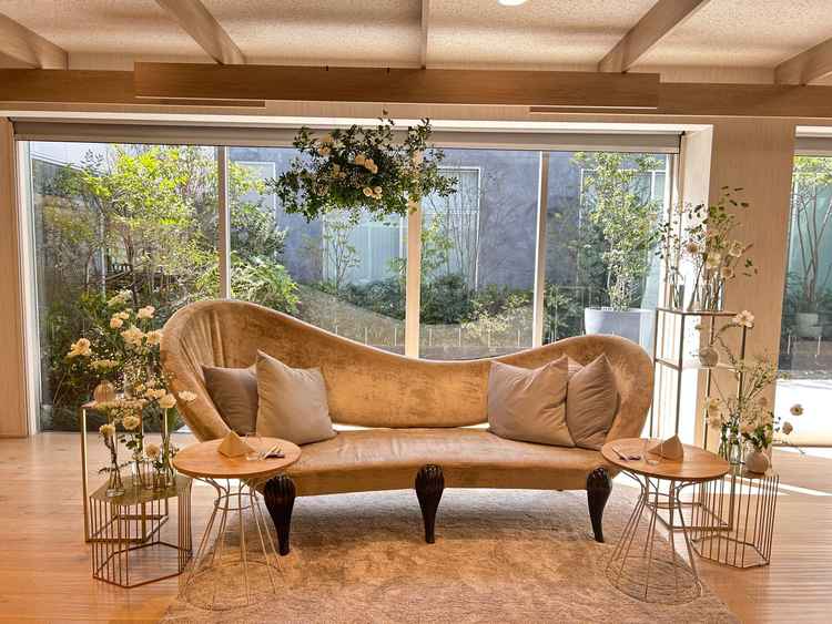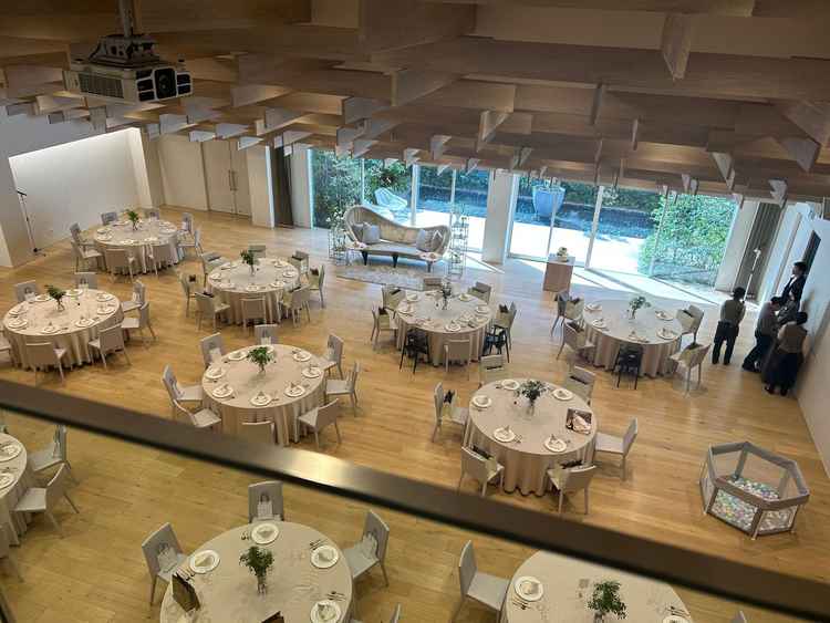 現代的な新しい建築デザインが有名な式場で、それを期待して見学に行きました。写真で事前に見ていたよりも、披露宴会場は天井が高く外の緑も見える解放感ある会場で良かったです。