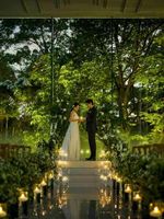 イルミネーションやキャンドルの柔らかな光が幻想的な雰囲気を作り出し、夜の挙式を一層特別なものに演出します。大切なゲストと共に、温かくロマンティックな瞬間を共有し、忘れられない結婚式をお楽しみください。昼間とは違う魅力を持つナイトウェディングで、心に残るひとときを過ごしましょう。