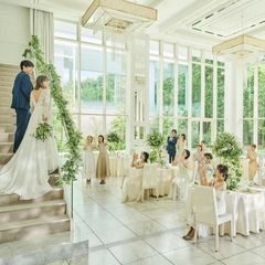 【美しい緑に囲まれた3面ガラス張りのチャペル】天候に左右されず、屋内にありながらも美しい緑と陽光に包まれたチャペルで、感動に満ちた一時を過ごそう。大切な挙式入場シーンを体感。感動のムービー演出体験も
