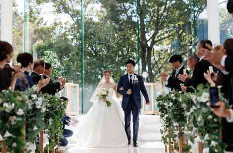 一生に一度の1日であり、お二人が共に歩む人生の新たなスタートを迎えるにあたって、たいせつなチャペル挙式。お二人がこれまで歩んできた人生は、一人では歩んでこれませんでした。参加してくださっているゲストの方々はもちろんのこと、参加できなかった方々にも見守っていただけるようにと空が見えるチャペルの造りでございます。 喝采の拍手を浴びながら、これからの人生に向けて手をとり歩んでいけるチャペル挙式。