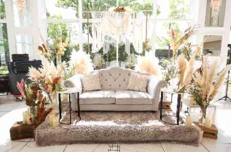 キャッスルガーデンOSAKAの会場は、緑溢れるロケーションの中、3面ガラス張りで創られているため、まるで中にいても外にいるかのような気分になれます。 何色にも染まる白色を基調としているシンプルな会場だからこそ、おふたりらしい色に染めていただき、おふたりが大好きな自然のぬくもり溢れる空間に包まれました。