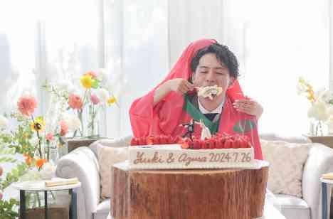 ケーキ入刀の後、新郎様と新婦様で二人羽織の演出をいたしました。 キャッスルガーデンOSAKAでは、おふたりの“らしさ”を詰め込んだ自由な演出をすることができます。 おふたりの楽しまれている姿を見て、ゲストの皆様も笑顔で溢れます。 皆様にとって一生忘れられない思い出となりますよう、全力でサポートをさせていただきます。