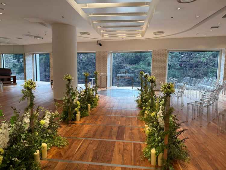 格式のあるホテルらしい豪華さと上品さが際立つ一方、自然光が入る会場や日本庭園が望める空間もあり、開放感も感じられた。華やかさだけでなく落ち着いた雰囲気の選択肢もあり、多様なニーズに対応できそう。