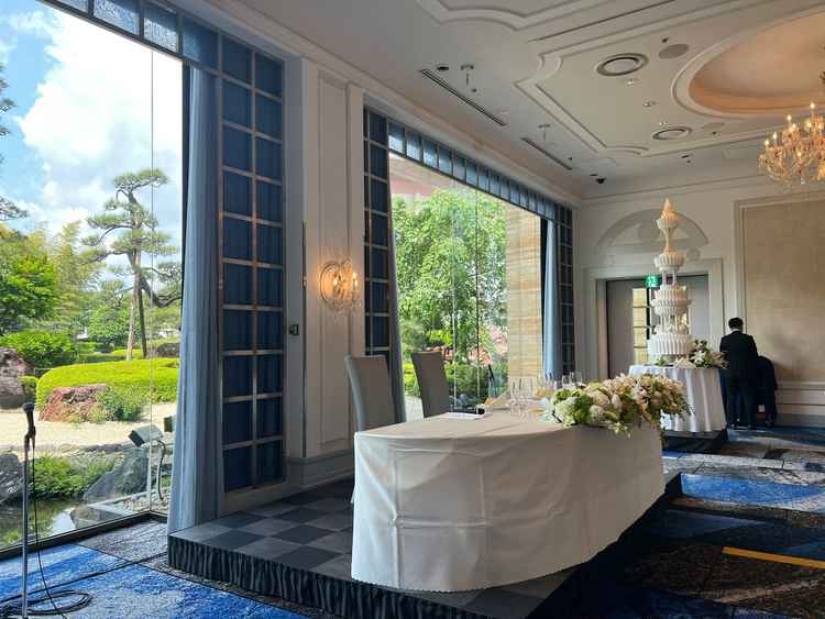 有名ホテルゆえ、敷地内では自分の結婚式以外の人が大勢過ごしているが、結婚式は宿泊とフロアが別であるためあまり気にならない(動線には注意が必要)。庭園やレストランなどもあり、結婚式後にも定期的に訪れたい。