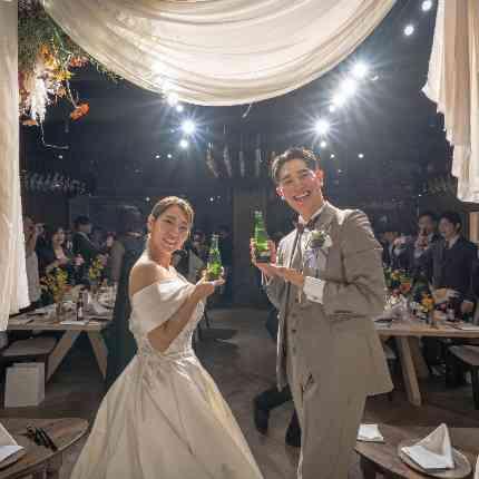 挙式が結び、少し緊張がほどけた様子のおふたり。ご披露宴でもふたりが主役よりもゲストが楽しめる事を優先。歓談や写真タイムをしっかり取り、ひとりひとりに直接「ありがとう」を伝えられる時間に重きを置かれました。大切なかげがえのないゲストに囲まれ、新郎新婦もゲストも自然な笑顔で過ごされていた事が印象的です★ふたりの軸であった「皆が楽しめる時間」「感謝を伝えたい」が叶うあたたかなご披露宴となりました。