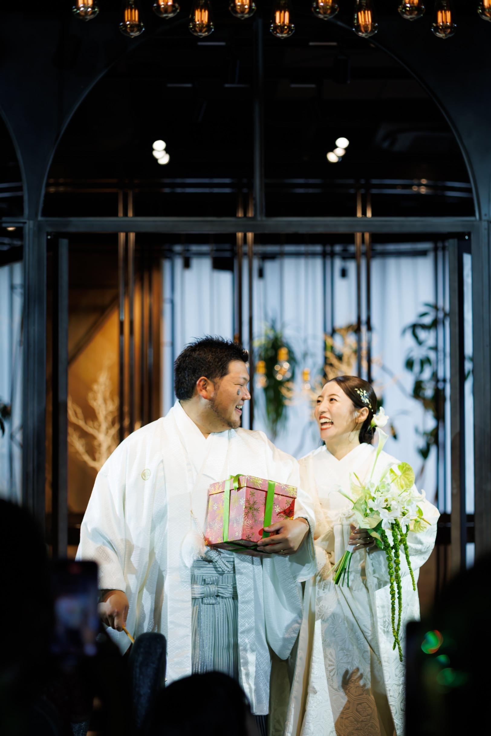 ディテールにもこだわったスタイリッシュなタキシードは、花嫁のドレスに合わせて充実したラインナップの中から選ぶことができる。豊富な色味や柄が揃った和装は、前撮りでも人気が高い
