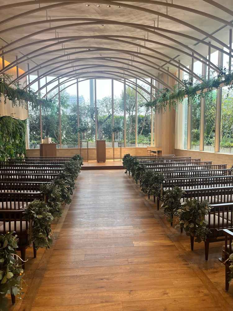 チャペルは都心を忘れる緑があり、披露宴会場はゲストとの距離感も近くできそうで、カジュアルな式をあげたい方にはとても良いと思いました。