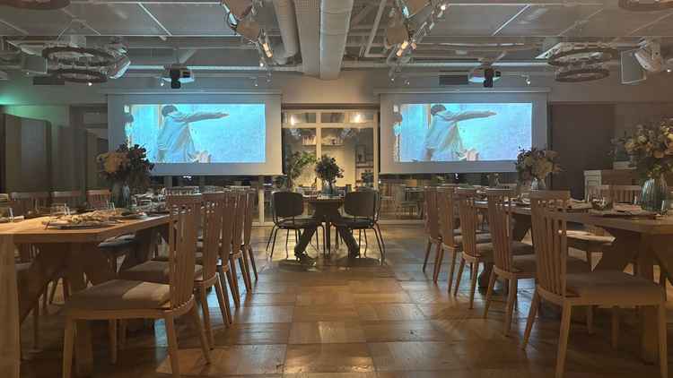 3連のスクリーンや、メッセージを書ける鏡が特徴的でよかったです。特に鏡は会場が広く見えるという利点もありました。