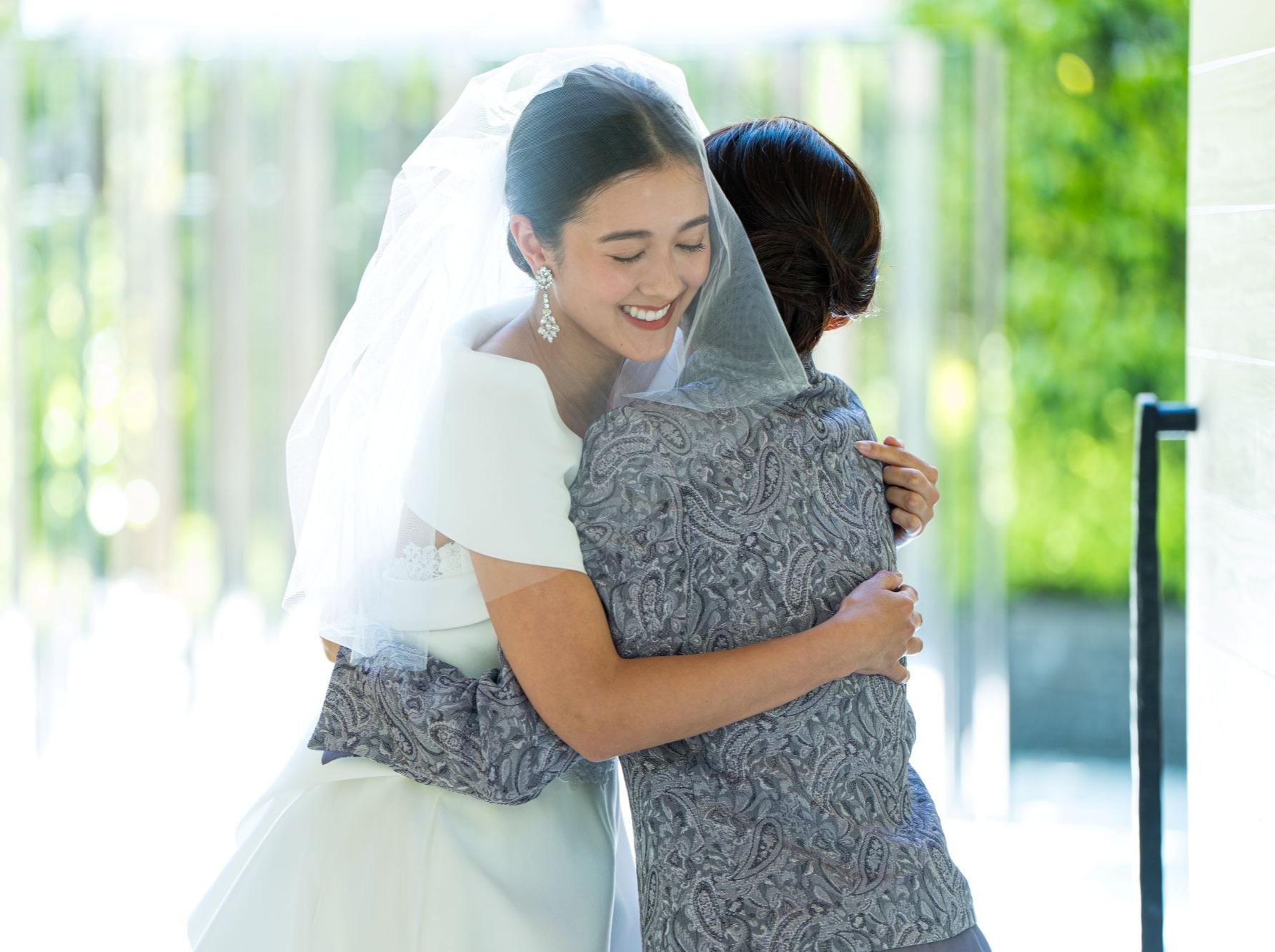 花嫁様が親御様と最後の「家族の時間」を過ごせるよう、プレシャスルームを設けています。挙式前に花嫁姿をしっかりと見ていただき、親御様への想いをありのままに伝えられる特別なお時間を。
