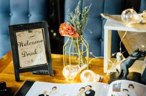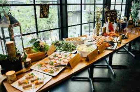ゲストにお酒好きが多いとのことで、おつまみ代わりにプロシュート、女性には嬉しいデザートブッフェをご用意!また、お二人にまつわるドリンクをお持ち込みされるなど…まずはお料理を中心にお打ち合わせを進めさせて頂きました。 会場の装飾に関しては、ウッドや少しくすんだグリーンなどをチョイス。カジュアルさを出すために作り込まれた装花ではなく、野花などを使って会場との一体感も演出しました!