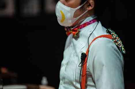 コロナ禍での結婚式の為ゲストの皆様に安心してご参加いただけるよう、最初のステージ”ネオンステージ”にてマスク会食のビデオ上映と、スタッフは個性的でユニークなデザインのマスクを着用し、あくまでもポジティブな取り組みとしてご紹介。moonステージでは三日月のマークが入ったマスクを発見!!披露宴のエンディングでマスクコード大賞も取り入れました♩