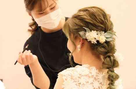 挙式会場や披露宴会場のコンセプト「ナチュラル」にぴったりのヘア&メイクを。花嫁様の希望の「大人可愛いナチュラル結婚式」。その後希望をお応えするため、コーディネートだけでなく、緑×白の髪飾りやアクセサリー、メイクまで徹底して結婚式を創りあげます。一生で一番想い出に残る日を一番かわいい姿でお披露目してください。