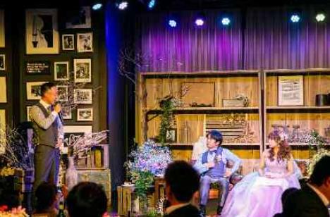 おふたりのコンセプト「Healing space」に沿って、会場を星や夜を表現するアイテムでコーディネート!特に、落ち着いていてスタイリッシュな雰囲気のシアターでは、「癒し」をテーマにしたコーディネートがとてもマッチしていました♪ゲストと近い距離で、デザートビュッフェやゲームなどを一緒に楽しみました!