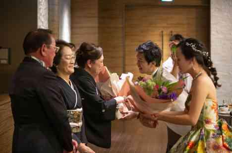 結びにはご両親様へ感謝の花束とお手紙を贈呈し、披露宴はおひらきに。お二人が手を取り合い歩み始めたワンシーンは感動的で素晴らしかったです。 ゲストをお見送りしたあとは和装に着替えて和装のフォトW。あいにくのお天気ではありましたが屋内の素敵スポットや軒下などを巧みに使い想い通りの撮影が出来ました。 夜はお泊りのご家族とビュッフェレストランでプチ宴会、温泉にも入って大大大満足の結婚式となりました。