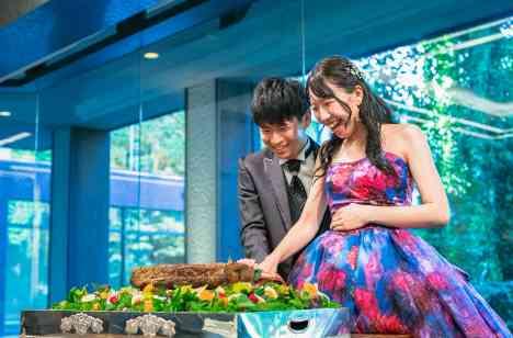 友人と被らない演出がしたいということで打ち合わせを重ねケーキ入刀もありきたりだからやらなくていいかなとおっしゃっていたお2人。「それならローストビーフに入刀して、それをメインの肉料理としてゲストに振舞うという演出はいかがですか?」という提案に乗っかってくださいました。ブロック肉の大きさにゲストもビックリ、大変好評な演出になりました!