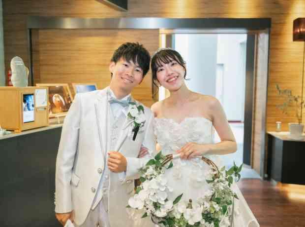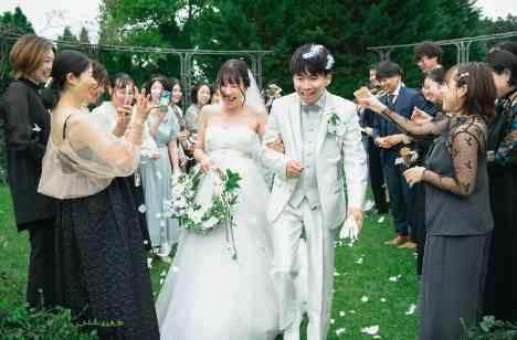 新郎様がガーデン挙式に憧れて決めた式場。でも挙式当日が近づくにつれ、天候や体調、ゲストの居心地などを考慮してチャペル内人前式にしようか悩みに悩んで出した結論は、やっぱり初めからこだわり続けた「ガーデン人前式」。お天気も味方をしてくれましたね。「やってよかった!」というお二人の言葉とゲストの皆様の笑顔が最高でした。