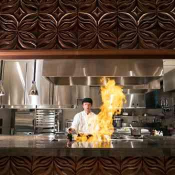 モダンで洗練された空間は、自然の温かさを感じながらゲストとリラックスした特別な時間をお過ごしいただけます。また、開放的でライブ感溢れるオープンキッチンはあらゆるセンスを刺激し、ゲストの食欲をそそります