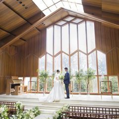 【緑と自然光溢れるリゾートチャペル】「緑×自然光」が織りなすナチュラルなチャペルで自然の温もりと光溢れる開放的なチャペルを体験◎ゆったりと時間が流れる空間で、ゲストとの感動の時間