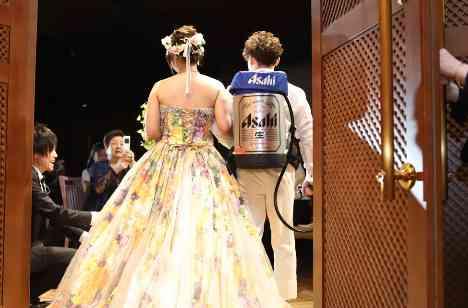 お色直し後は…新郎様がビールサーバーを背負ってご入場☆ ゲストの皆様ひとりひとりにビールをお注ぎしながら、お写真を撮ったりと皆さんと一緒に盛り上がりました!皆様の楽しそうな表情が印象的でした。 Aさん、Sさん、末永くお幸せに…♡