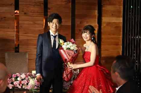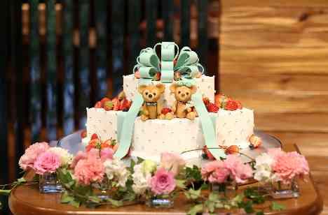 披露宴では、フォトラウンドでゲストの皆様と楽しいお時間を♪そしてご新婦様の「すき」を詰め込んだオリジナルウエディングケーキ❤ご新郎様ご新婦様からしか見えない位置に「結婚おめでとう。兄貴の仲間たちより」と素敵なメッセージが…◎
