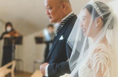 おふたりが選ばれたのは教会式のスタイル。バージンロードはお父様とごゆっくり歩かれました。リングキッズはお二人のお子様に、とても可愛いかったです!和やかな雰囲気の中、おふたりは大切な方々の前で永遠の愛を誓っていただきました。アフターセレモニーではフラワーシャワーの代わりにゲストにクラッカーをお持ちいただき華やかなシーンとなりました。