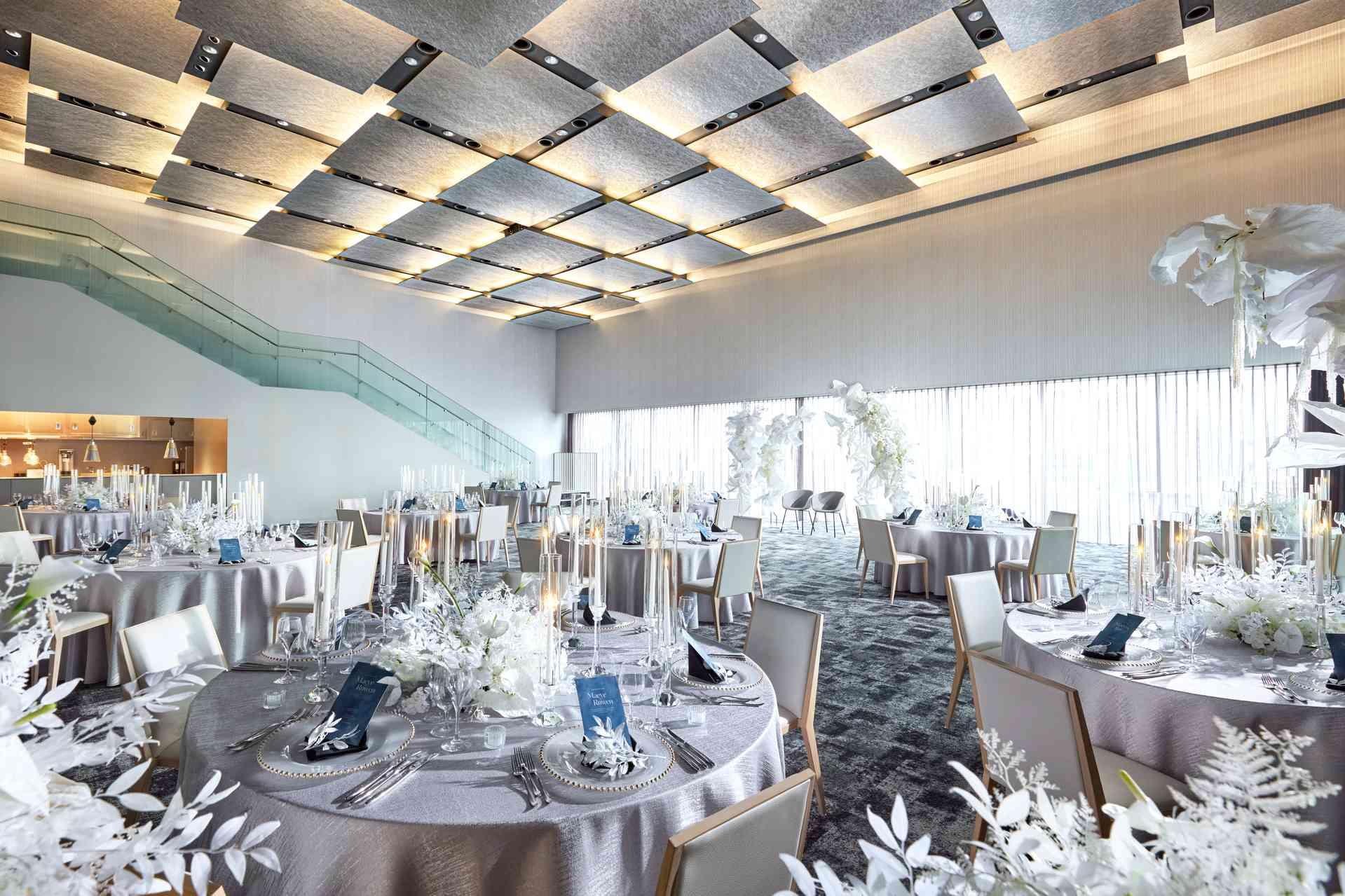障子を彷彿させる壁が市松模様を描く、伝統美と現代の感性が融合した会場。「現代風 和モダン」がコンセプト 現代女性に合う洗練された現代の和空間が広がる【収容人数90~200名(推奨人数90~160名)】