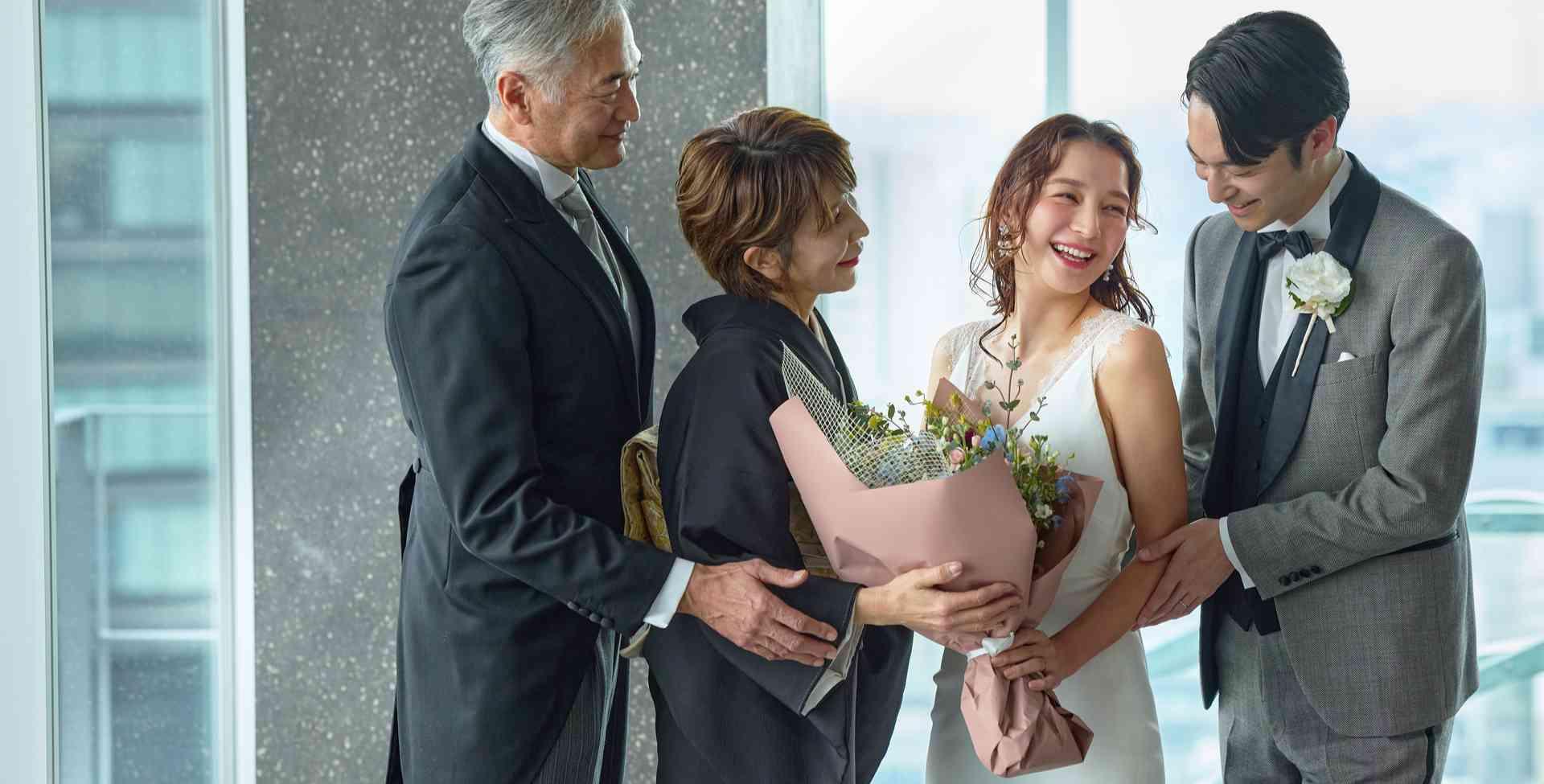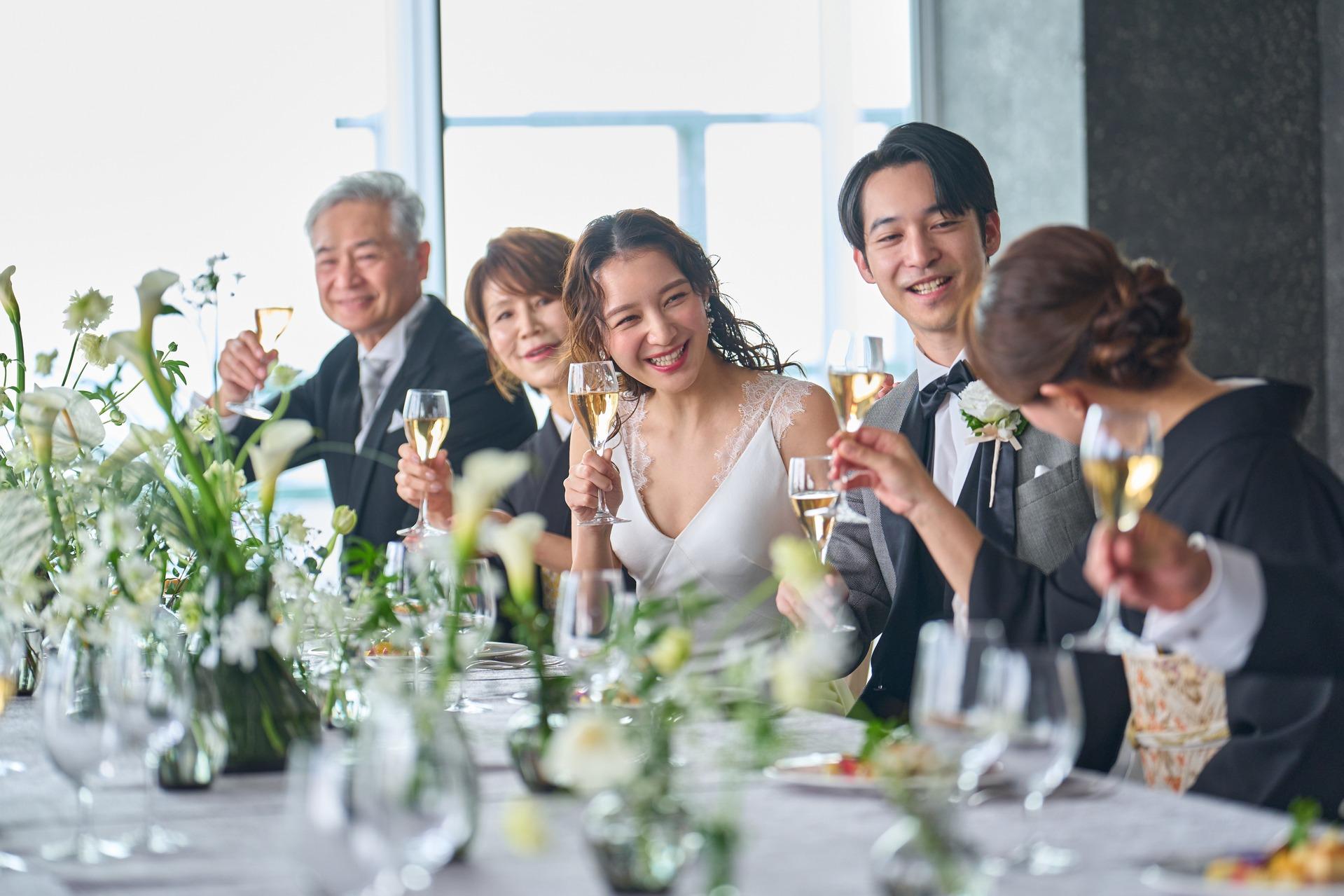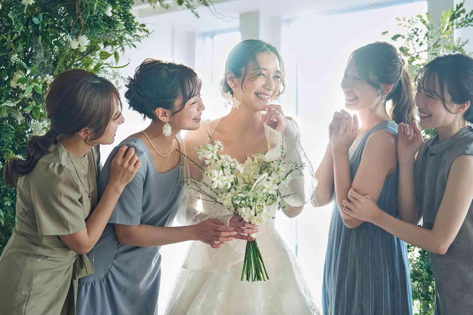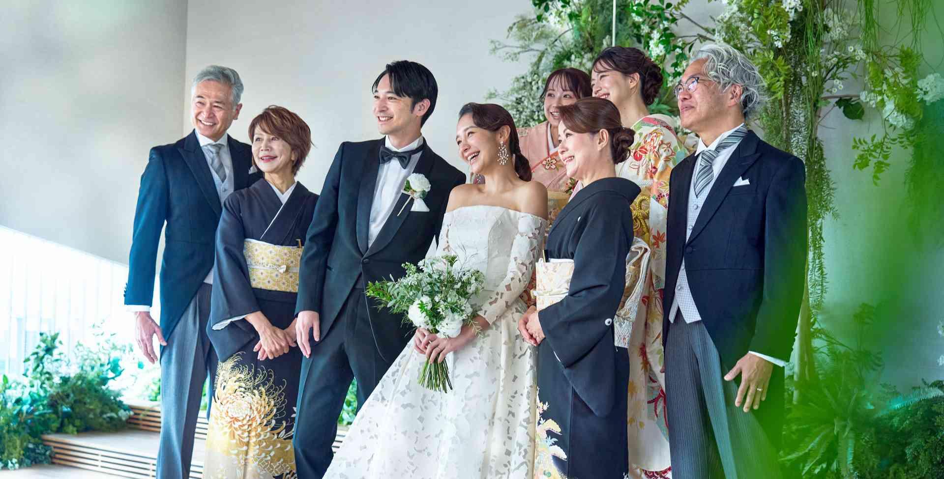 和装でのパーティーこそ、緑を取り入れて軽やかさを演出 挙式のドレスから、和装を着替えることでまた違った美しさを見せられ ほどよいおもてなし感や主役感も生まれる