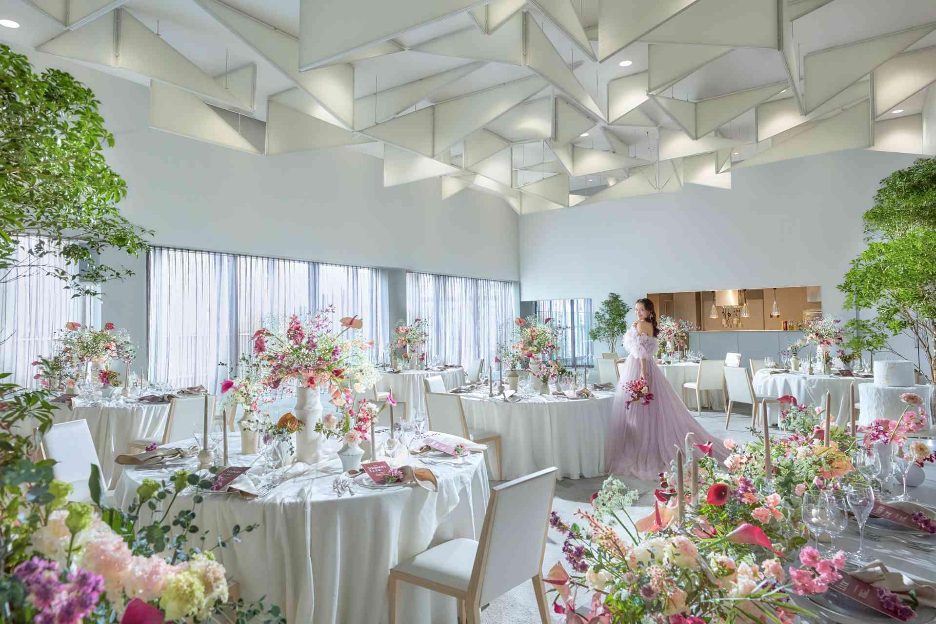 ホテル×ゲストハウスのいいところだけを取って設備や動線に至るまで考え尽くされて設計された披露宴会場。階段入場やオープンキッチン、テラスでのデザートビュッフェなど様々な演出がゲストをもてなす貸切空間