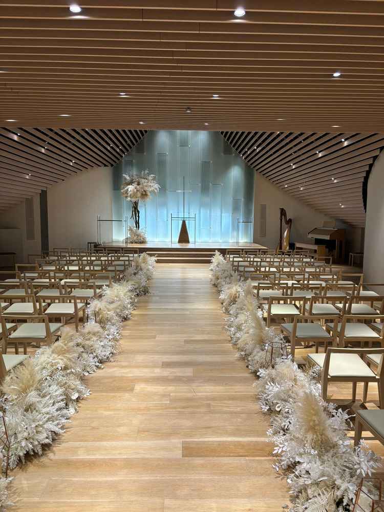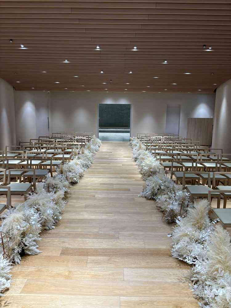 挙式場は2つあり、どちらもおしゃれで綺麗な印象。披露宴会場は3つ見学させてもらい、どの会場も天井が高くて圧迫感がなかった。