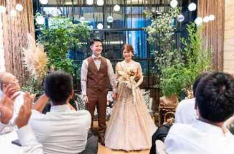 ゲストの皆様にも印象深い記憶や想いが刻まれますようにと、こだわったアイテムやパーティ内容。シャンパンゴールドのドレスもパーティを盛り上げる演出のひとつとして、キラキラ輝きを。美食と非日常のパーティ空間、ガーデンテラスの名古屋名物「お菓子まき」や自由に行き来し、ゆっくりと過ごす歓談など五感をくすぐるパーティに終始、笑みがあふれます。