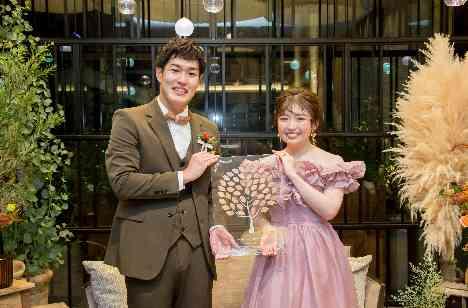 新婦様はくすみピンクの大人可愛いフリルドレスでパーティ感あふれるカジュアルな装いでお色直しのご入場。ウェディングセレモニーはゲストの皆様にお手伝いいただいたウェディングツリーに最後のピースを当てはめてお披露目を。特別な日を一緒に過ごした記念品を喜びいっぱい見つめるお二人の笑顔がとても印象的なセレモニーとなりました。